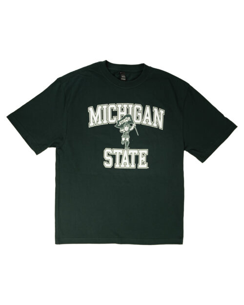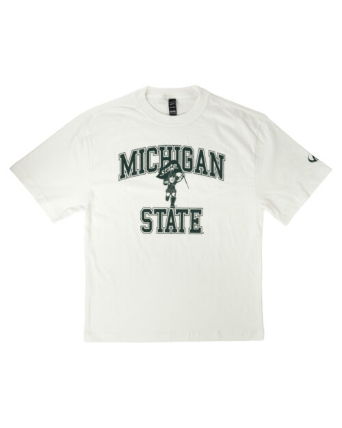 Show your Spartan pride in our officially licensed Michigan State University t-shirt featuring Sparty waving the Spartan flag. Designed for fans who want comfort and style, this tee is perfect for game days, campus life, or everyday wear.