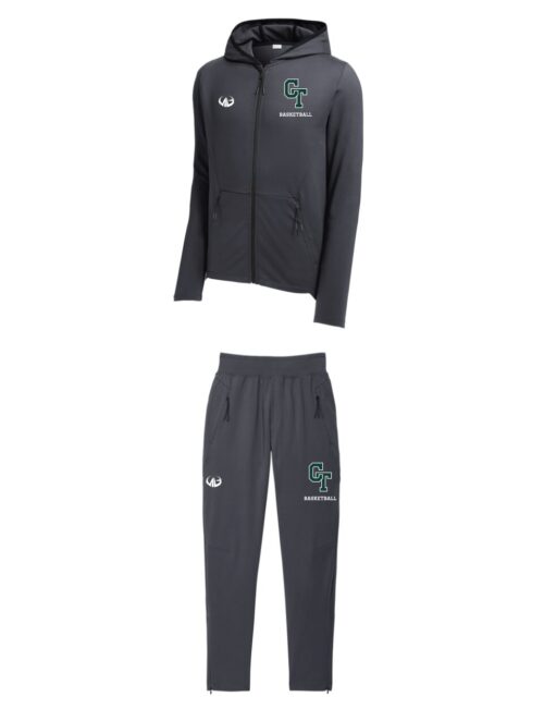 This is the official Cass Tech Basketball package featuring a graphite full zip jacket, matching pants, and a black backpack. Each item comes embroidered with the CT logo and basketball for a sharp, unified team look. The jacket and pants are made from a smooth 78/22 poly spandex blend for comfort and mobility.